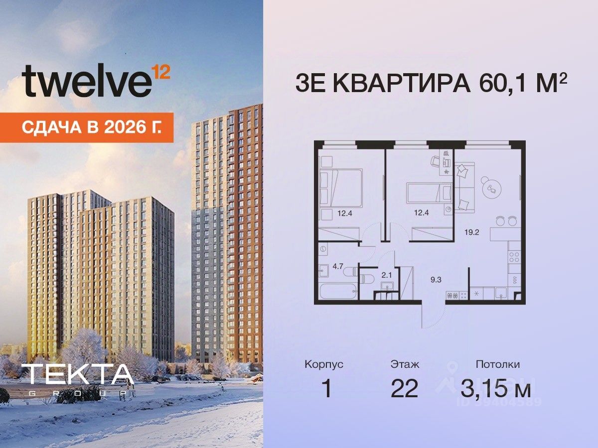 Рассрочка 0% с платежом от 120 000 ₽ в месяц. Сдача уже в 2026 году 3-комн. квартира в ЖК "Твелв" на 22 этаже в 34 этажном здании Корпус 1. Общая площадь: 60.1 кв.м., жилая: 33.30 кв.м. Высота потолков 3.15 м. ЖК Твелв от застройщика Текта Групп — это новый уровень жизни в районе Нагорный в 3-х минутах от станции метро. Проект представляет собой воплощение современной концепции комфортной жизни, где функциональность органично сочетается с эстетикой. Архитектура Твелв создает атмосферу, вдохновляющую на успех и располагающую к позитивным эмоциям. Дом, в котором каждый день будет наполнен уютом, а не рутинной работой и дорожными пробками. Твелв предлагает своим жильцам продуманные планировки, возможность объединения квартир, а также увидеть красоту города через угловое остекление увеличенных окон. Особое внимание уделено комфорту жителей: благоустроенная территория, зеленые насаждения, детские площадки, парковка. ЖК Твелв — это больше, чем просто жилье: это атмосфера умиротворенности, комфорта и гармонии.