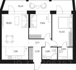 Жилая площадь 26 кв. м - это две изолированные комнаты (14,40 и 11,64 кв.м).