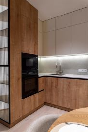Кухня и гостиная занимаю 25,96 кв.м, из них пространство кухни занимает 7,36 кв.м.