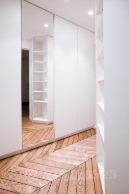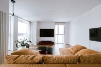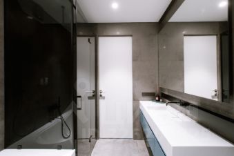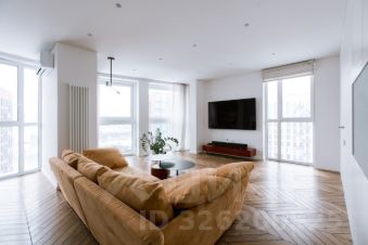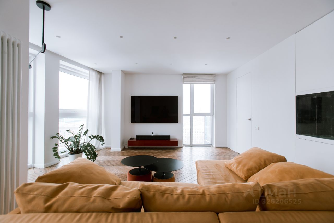 Мастер спальня удобно расположена в дальнем конце от активной зоны гостиной, предусмотрена большая ванная комната с ванной и душевой кабиной, а так же большая гардеробная. Из панорамных окон гостиной открывается вид на Москва-реку, а окна спален выходят на тихий, благоустроенный двор с фонтаном.