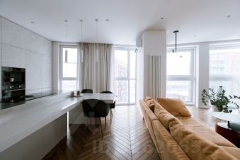 Выполнен дизайнерский ремонт с использованием дорогих и качественных материалов. Вся мебель, представленная на фото, входит в стоимость квартиры.