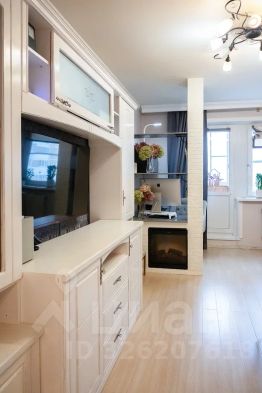 Жилая комната имеет выход на балкон застекленный, оборудована мебелью, а также имеется выделенное место под встроенный кабинет с камином!