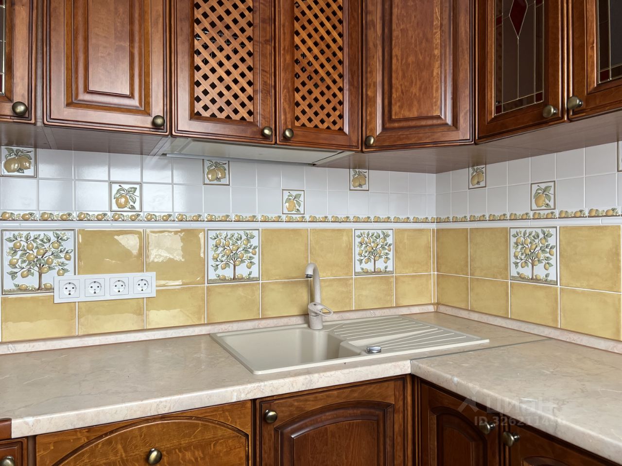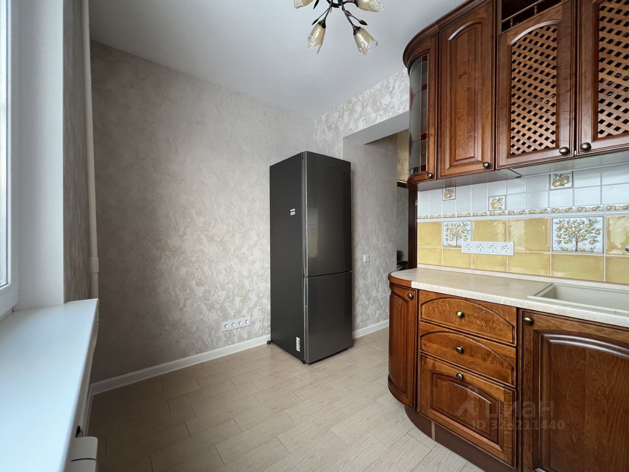 Кухня 7 кв.м со встроенным гарнитуром с итальянскими фасадами из натурального дерева, новый двухкамерный холодильник Samsung.