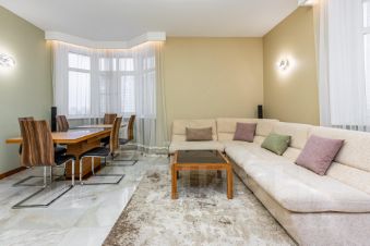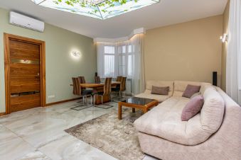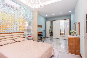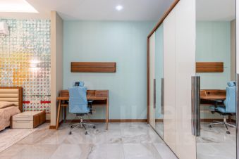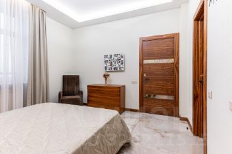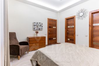 Квартира полностью меблирована и укомплектована всей необходимой техникой. Функциональная планировка включает гостиную, кухню-столовую, мастер-спальню со своей ванной комнатой и гардеробной, вторую спальню со своей гардеробной, гостевую спальню, санузел и холл.