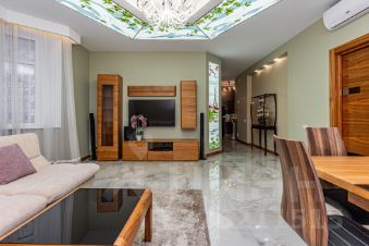Продаётся светлая, видовая квартира с 3 спальнями общей площадью 128 м² в комплексе бизнес-класса Алые Паруса на берегу Москвы-реки. Квартира с дизайнерской отделкой расположена на 17 этаже, откуда открываются виды на Москву-реку и город. Интерьер оформлен в современном стиле. Многоуровневый потолок в гостиной украшен декоративной росписью. Установлена система индивидуального кондиционирования.
