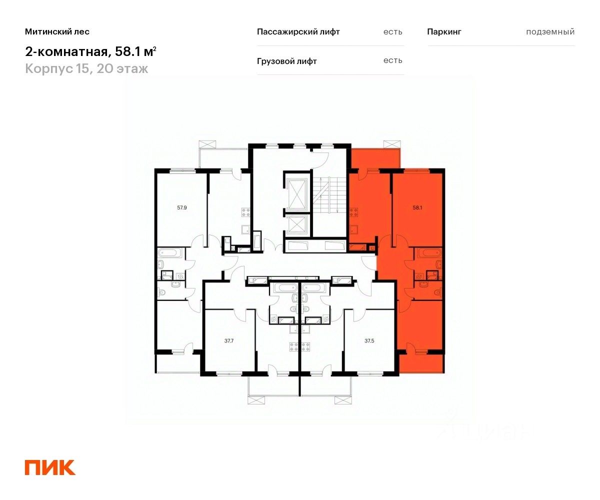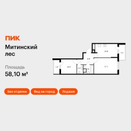 Продаётся 2-комн. квартира площадью 58,1 кв.м на 20 этаже 25 этажного дома (Корпус 15, Секция 3) проекта ПИК Митинский лес. Светлый просторный подъезд на уровне земли, функциональная планировка, большие окна, без отделки.