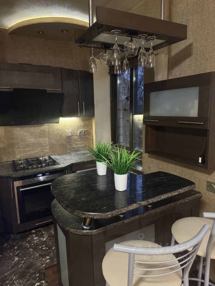 Кухня: столешница из натурального камня, фасады из натурального дерева, встроенная посудомойка Electrolux, газовая плита, раковина Kuppersberg, встроенный измельчитель в раковине, фильтр. вытяжка над плитой, стиральная машина, холодильник, духовка. Барная стойка, барные стулья.