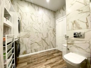 - Совмещенный санузел, унитаз со скрытой инсталляцией