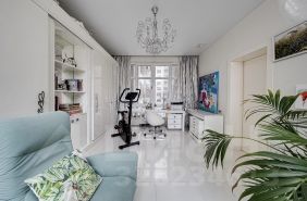 В санузлах тёплые полы. На окнах гостиной и спальни электроподьемники для штор, управляющиеся как от пульта, так и с помощью голосового помощника. Подоконники в комнатах из итальянского мрамора.