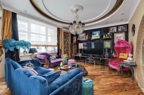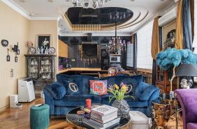 Дизайн квартиры выполнен в современном стиле фьюжен, с элементами классики и паназиатского стиля.