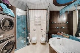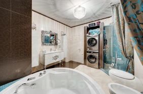Оба санузла оборудованы просторными душевыми, в мастер-ванной установлена большая круглая ванна с аэромассажем и подсветкой. Везде стоят выключатели и розетки итальянской фирмы Bticino.