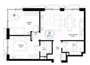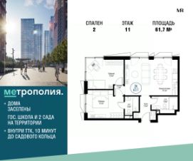 Продаётся 2-комнатная квартира общей площадью 61.70 м², на 11 этаже.