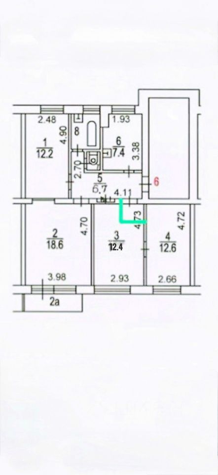 7,4 м²