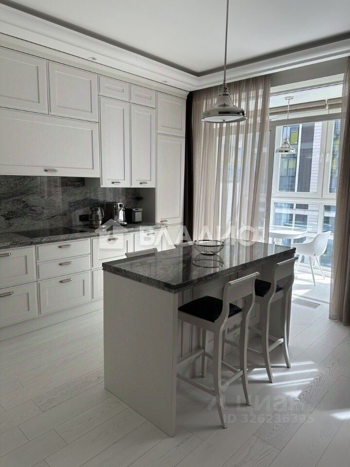 Выполнен премиальный дизайнерский ремонт: итальянская кухня Scavolini с натуральным камнем, сантехника Villeroy & Boch, немецкая техника Miele и Liebherr. Отдельно выведено видеонаблюдение при входе в апартаменты.