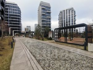 Включает в себя несколько кварталов, объединенных ландшафтным дизайном в единое пространство с собственным центральным бульваром и набережными, большим разнообразием собственной и городской инфраструктуры.