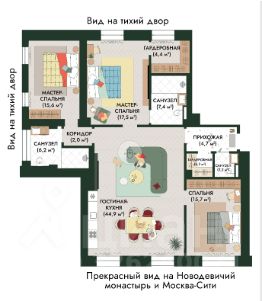 — Планировка: кухня-гостиная, 3 спальни