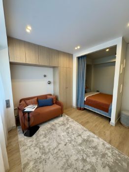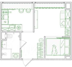 Квартира с идеальным планировочным решением и функционалом: изолированная комната оборудована выделенной спальной зоной (установлена двуспальная кровать с подъемным механизмом) и зоной отдыха, система хранения выполнена на заказ с учетом индивидуальных характеристик, установлен кондиционер. Кухня оборудована встроенным гарнитуром с техникой: холодильник, посудомоечная машина, варочная панель с духовым шкафом. Санузел совмещенный с душевой кабиной. В мокрых точках установлена система от протечек.
