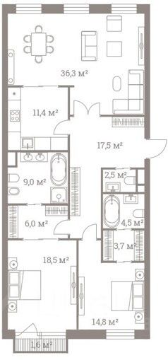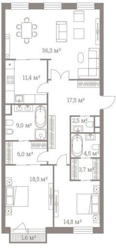 2 санузла - 4,5 м2 и 2,5 м2;