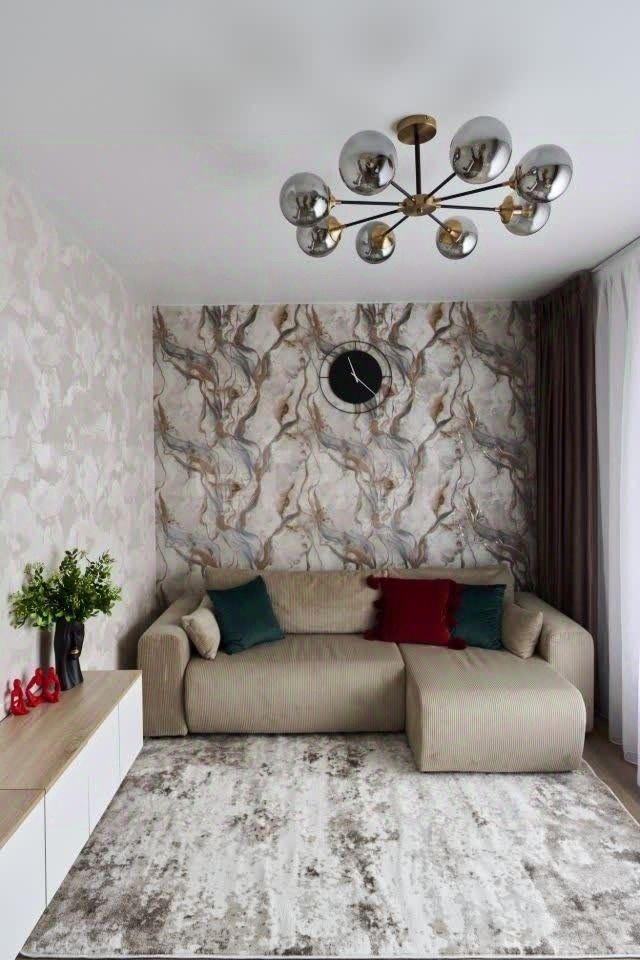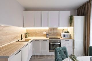 Квартира полностью готова к заселению, продается с современной отделкой и укомплектована новой мебелью и техникой. В просторной кухне установлена встроенная техника: индукционная плита, духовой шкаф, посудомоечная машина и холодильник.