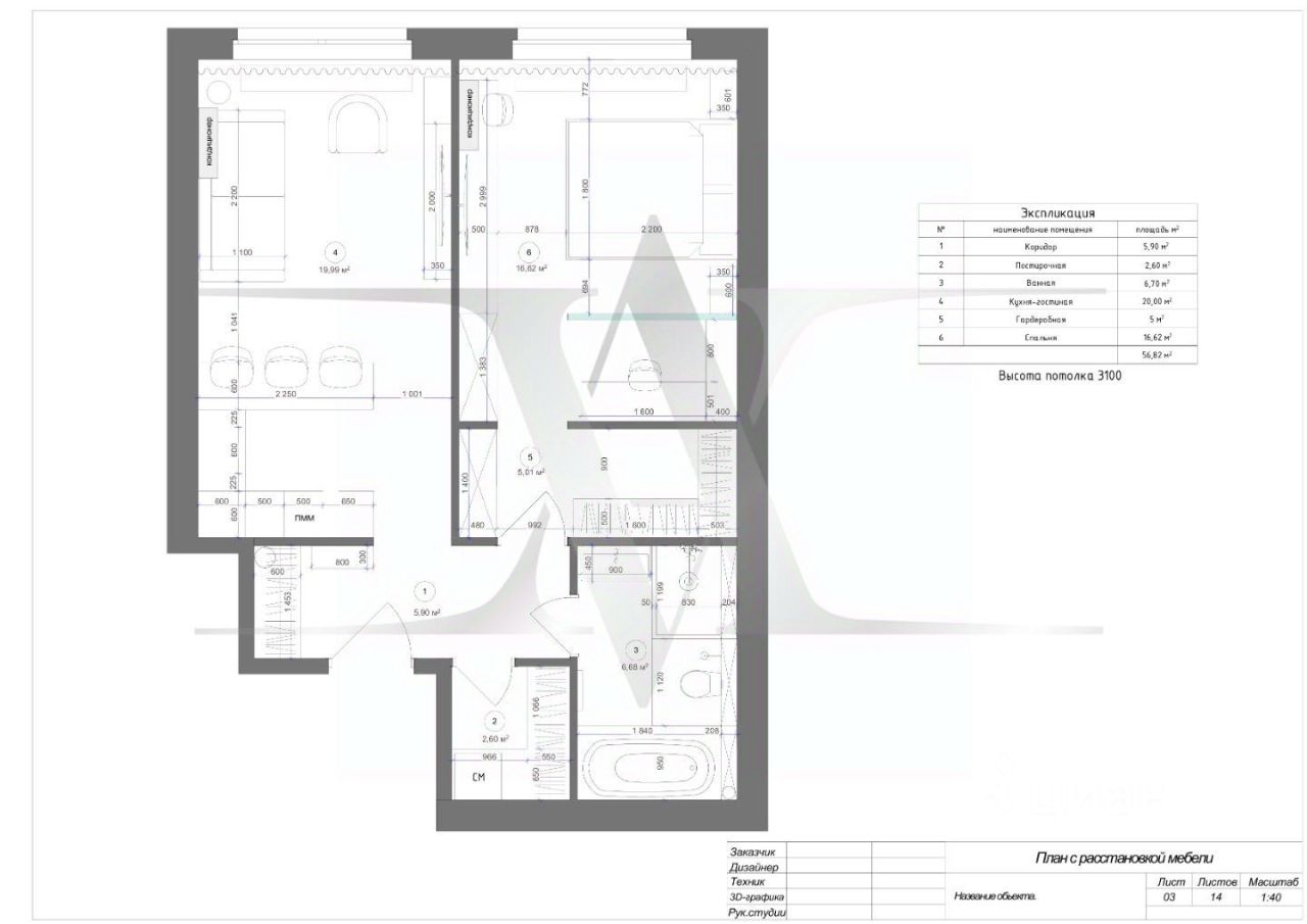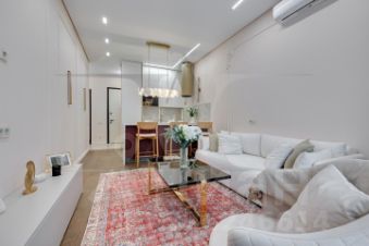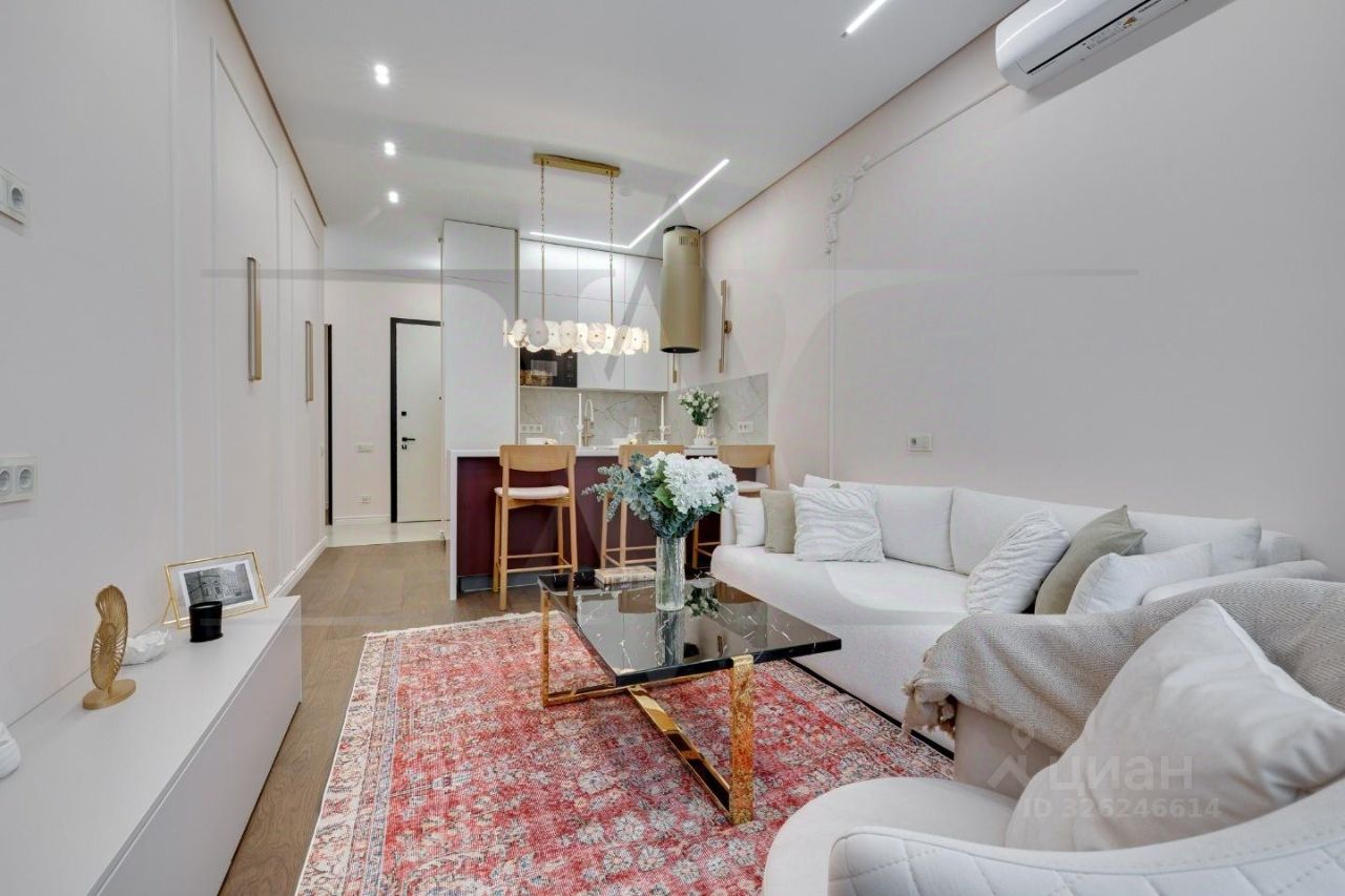 Квартира с новой мебелью, кухонным гарнитуром и техникой. Планировка: кухня-гостиная, изолированная спальня, санузла и гардеробная. Высота потолков 3 метра.