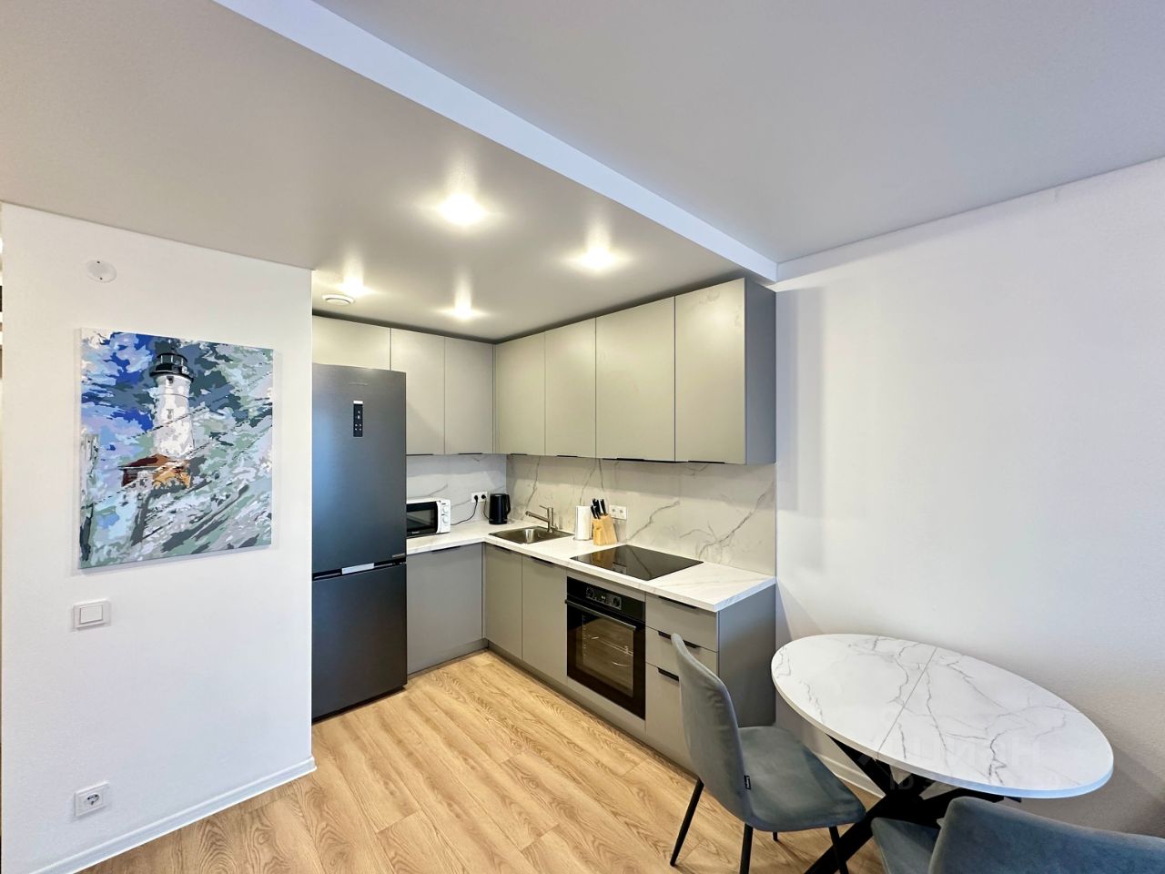 Готова к проживанию: остается вся мебель и качественная бытовая техника зарубежных брендов.