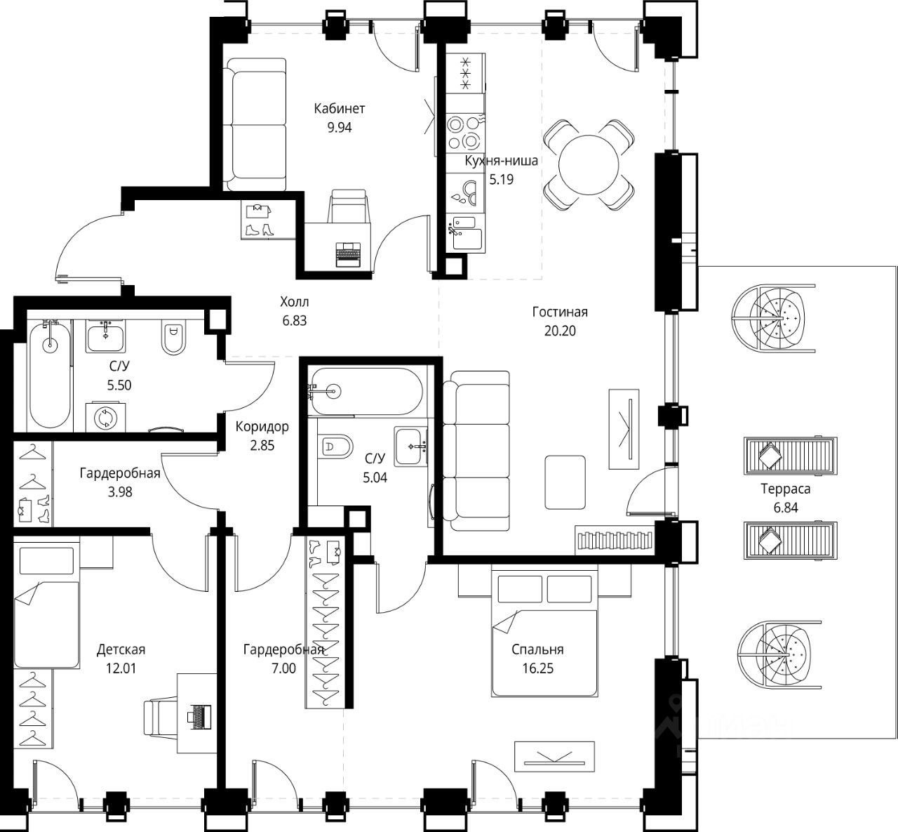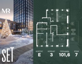 В ЖК SET продается 3-комнатная квартира площадью 101.63 м², расположенная в корпусе Е, на 7 этаже 8 этажного дома.