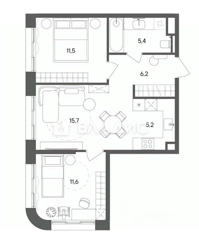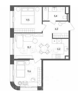 - Площадь 55,6 кв.м