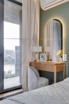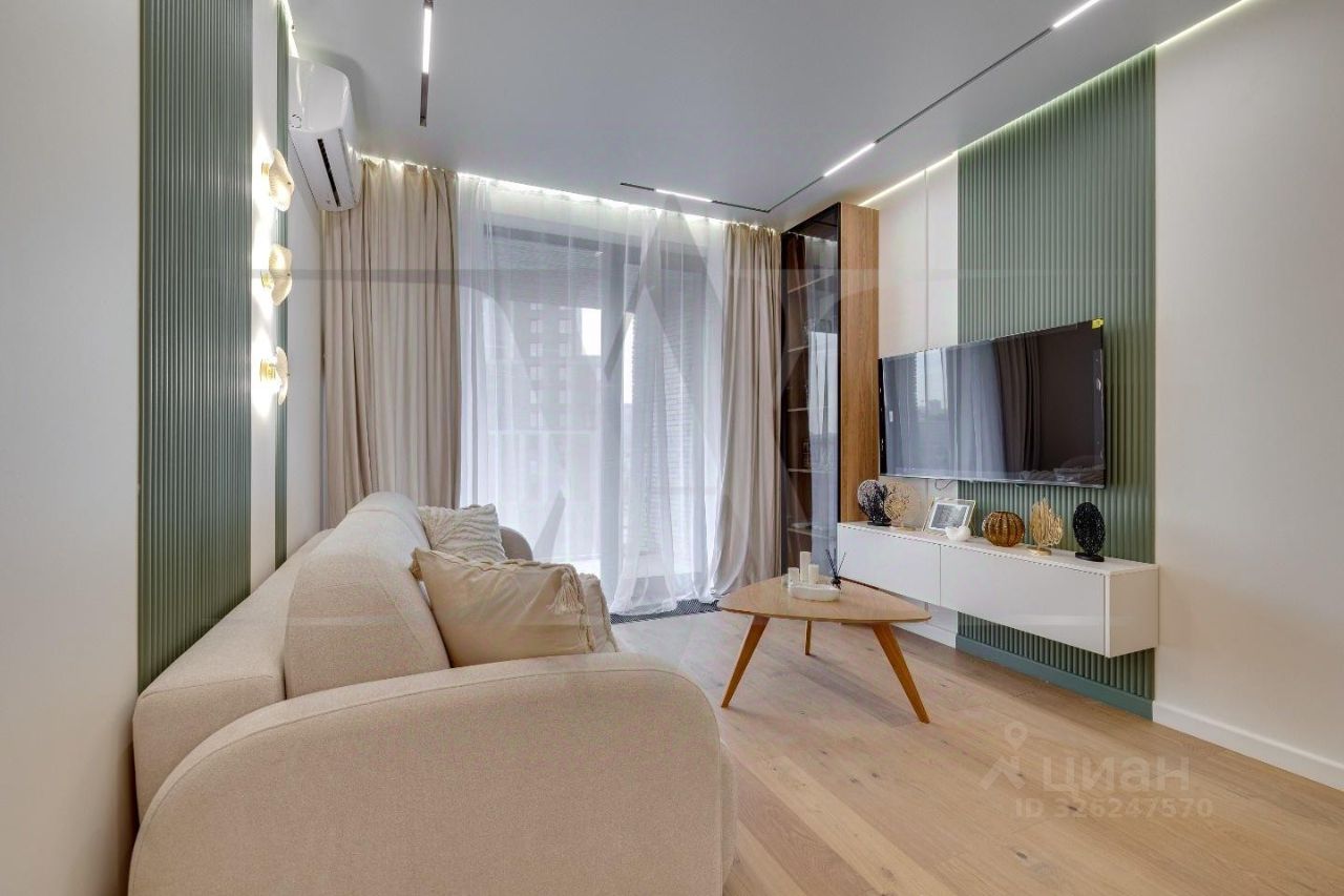 Квартира с новой мебелью, кухонным гарнитуром и техникой. Планировка: кухня-гостинная, две изолированные спальни, два санузла. Высота потолков 3 метра.