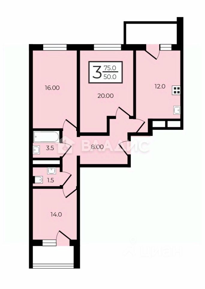 Эргономика квартиры использует каждый квадратный метр квартиры с эффективной пользой, образуя большую полезную жилую площадь - две большие комнаты, вместительная кухня-гостиная, два санузла, широкий коридор.