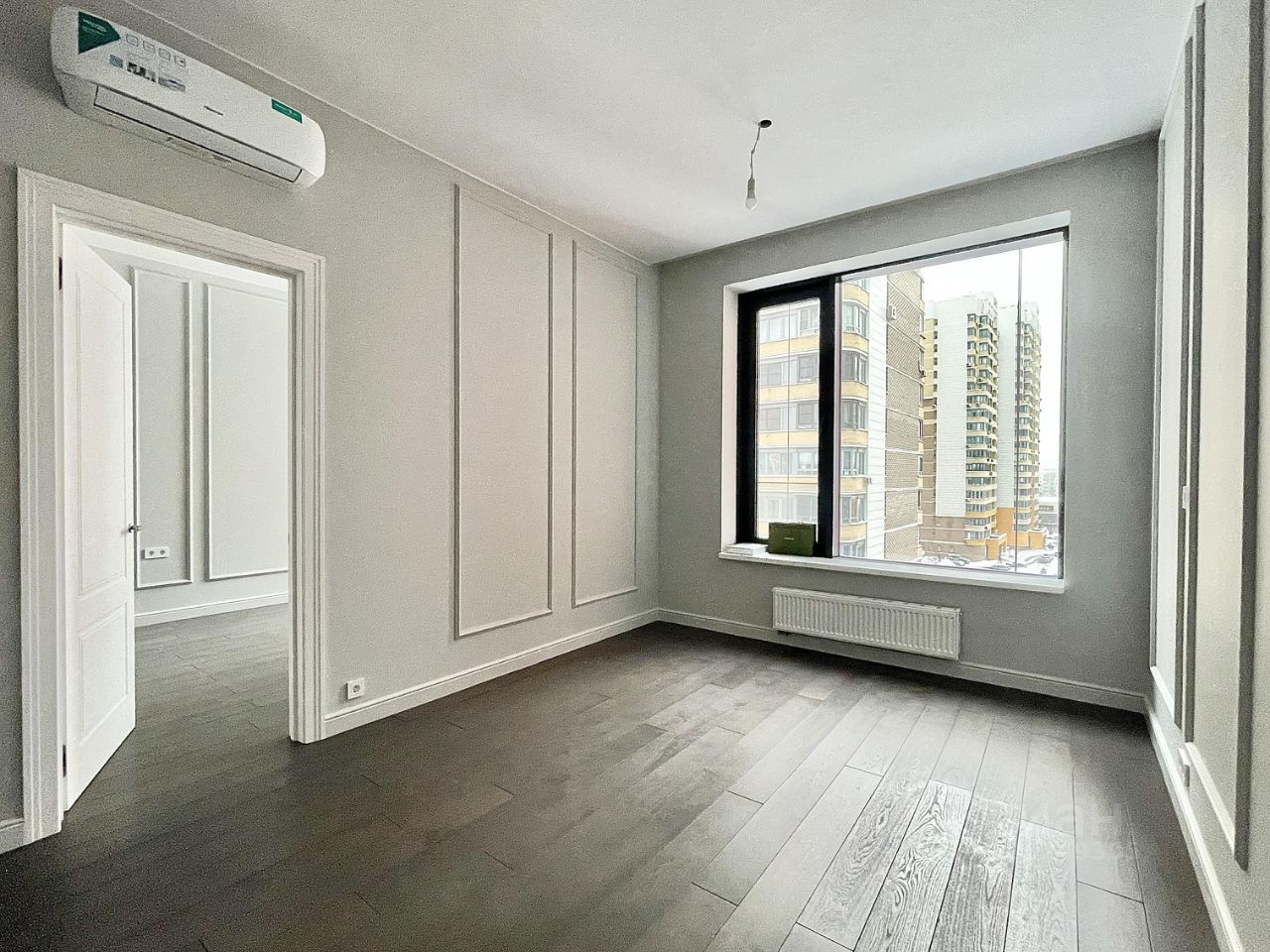 - финишная покраска, потолок из ГКЛ белого цвета с нишами под шторы. Установлены точёные светильники и сделаны выводы под люстры. В каждой комнате установлена сплит-система с внутренним и внешним блоком, электрофурнитура (розетки, выключатели). В санузлах установлена вся сантехника, тумбочка под раковину, оборудован теплый пол. Благодаря увеличенным окнам и высоким потолкам квартира наполнена светом и воздухом.