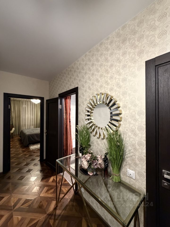 Две изолированные спальни и гостиная с проходом на кухню. Просторная, чистая, со всей жилой мебелью и бытовой техникой - всё остаётся, кроме телевизора, при необходимости возможно вывезти мебель. Есть застекленная лоджия.
