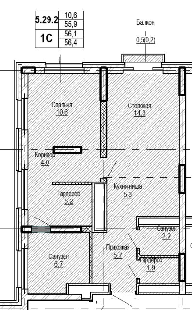 56,4 м²
