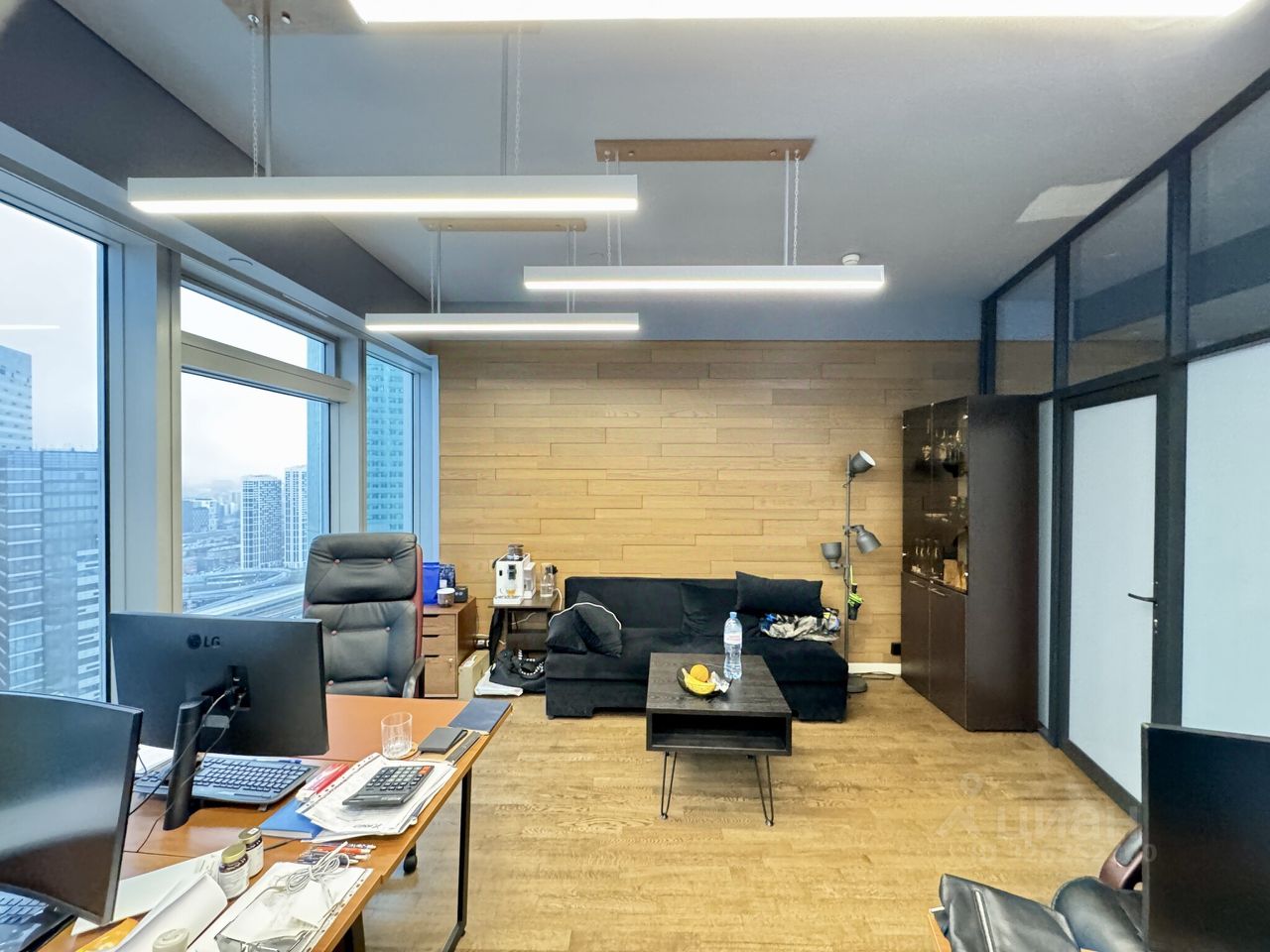 Прекрасные апартаменты расположены на 33-м этаже башни "Москва", входящей в состав многофункционального комплекса "Город столиц". Из больших окон открываются виды на панораму Москвы.