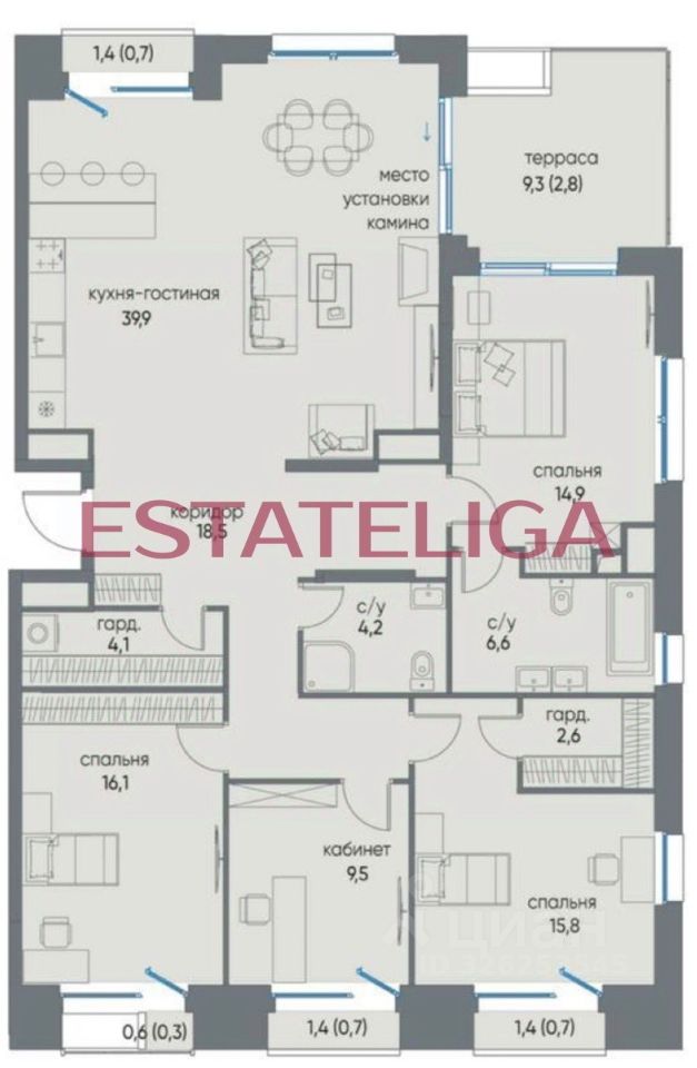 • 4 изолированные спальни