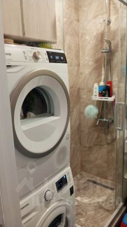 Санузел раздельный. Установлен душевой угол, раковина, стиральная и сушильная машины.