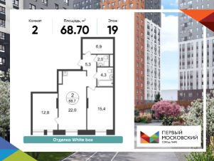 Общая площадь квартиры - 68,7 кв. м, этаж - 19 из 22.