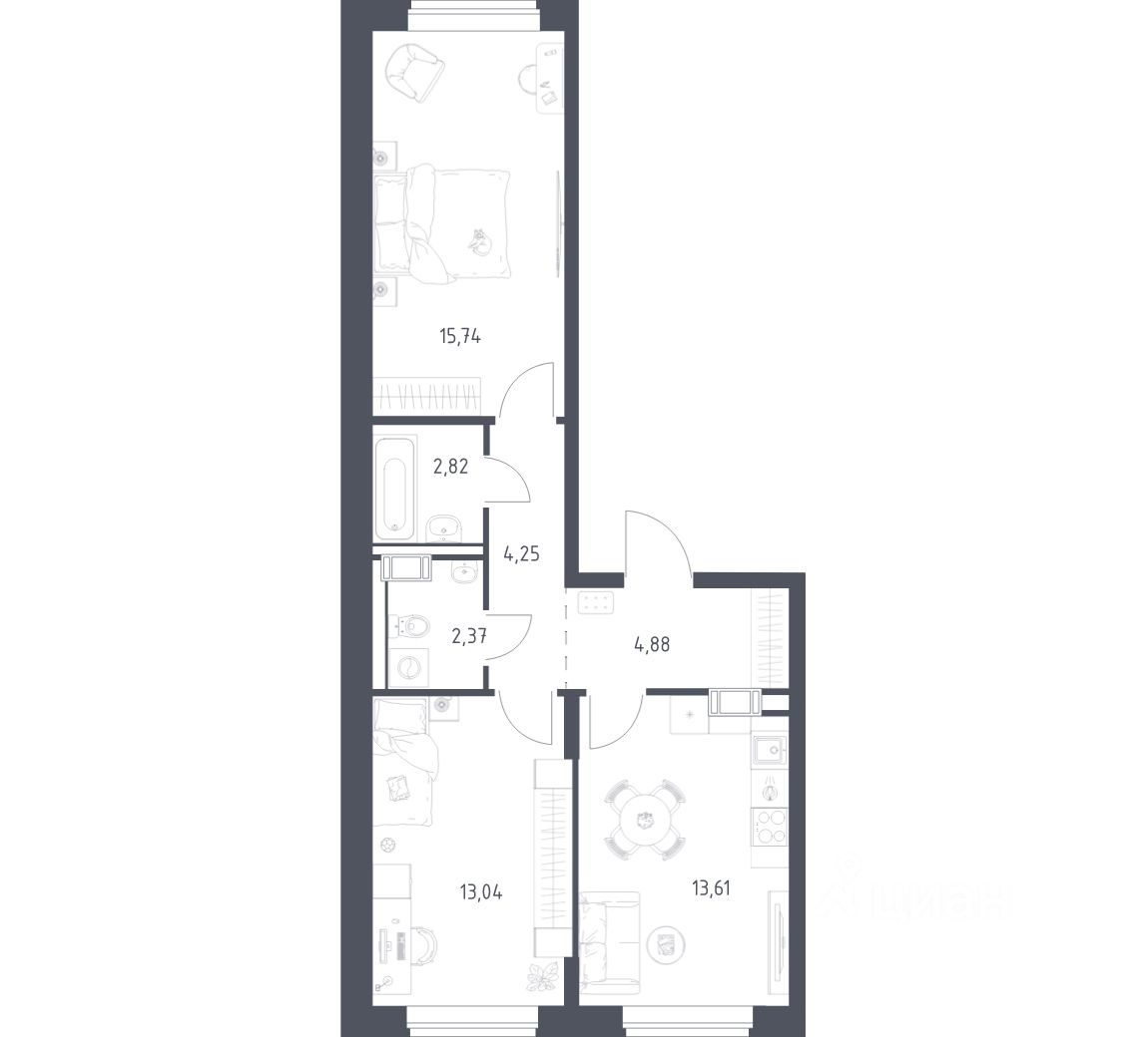 Строим кварталы для жизни с заботой о будущем. Предлагается 2-комнатная квартира комфорт-класса площадью 56,7 кв.м в корпусе 13 на 3-м этаже, в жилом комплексе "Алхимово".