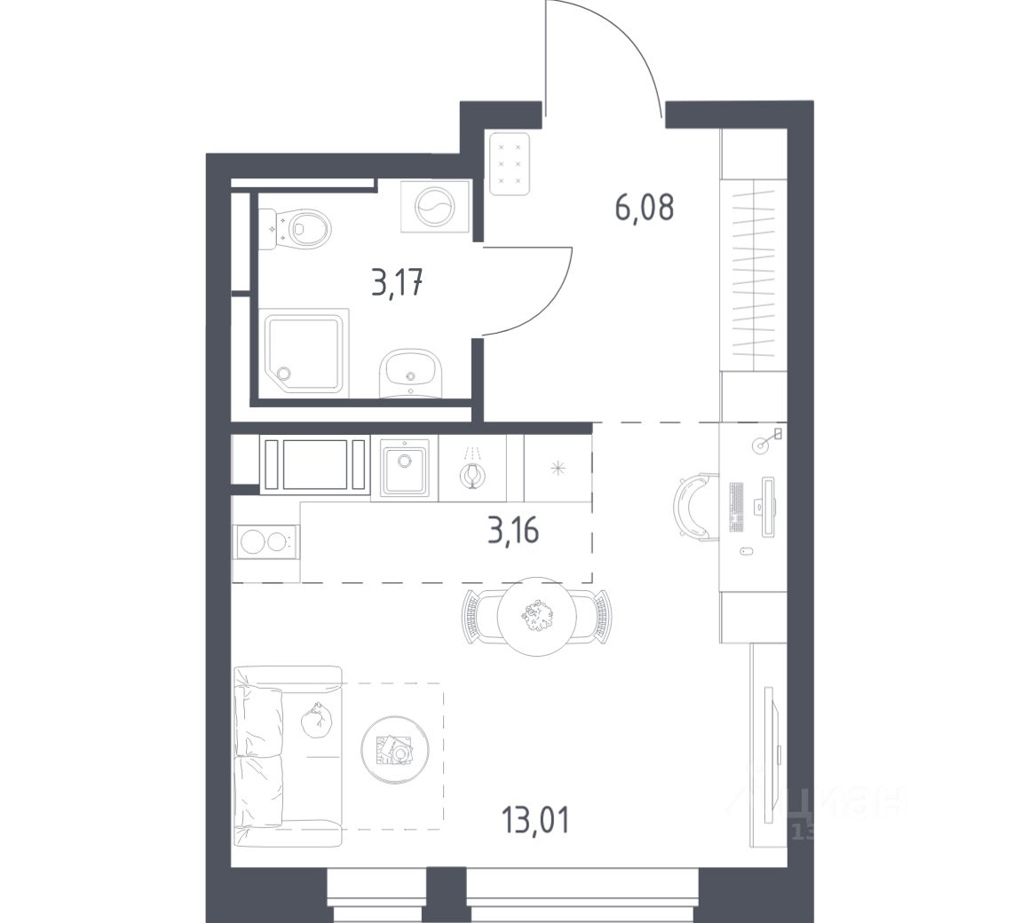 Строим кварталы для жизни с заботой о будущем. Предлагается студия комфорт-класса площадью 25,5 кв.м в корпусе 13 на 3-м этаже, в жилом комплексе "Алхимово".
