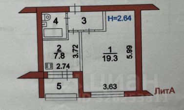 Общая площадь жилого помещения 34 м² + 1,3 м² лоджия.