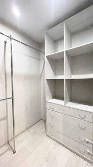В комнате имеется гардеробная с двумя шкафами и тремя штангами, утюг, беспроводной пылесос DYSON.
