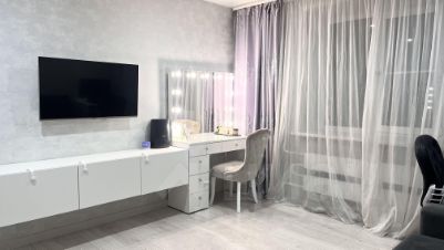 В комнате: диван АСКОНА (приобретен недавно), компьютерный стол и стул, косметический столик с зеркалом и подсветкой, кресло, телевизор, 3-х секционная полка.