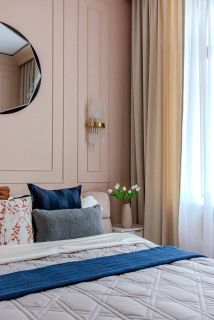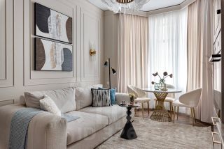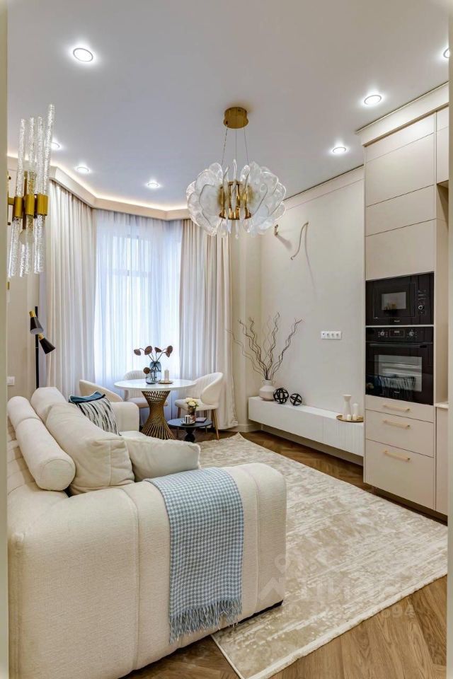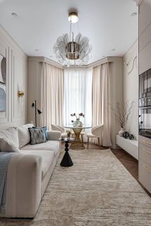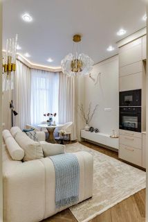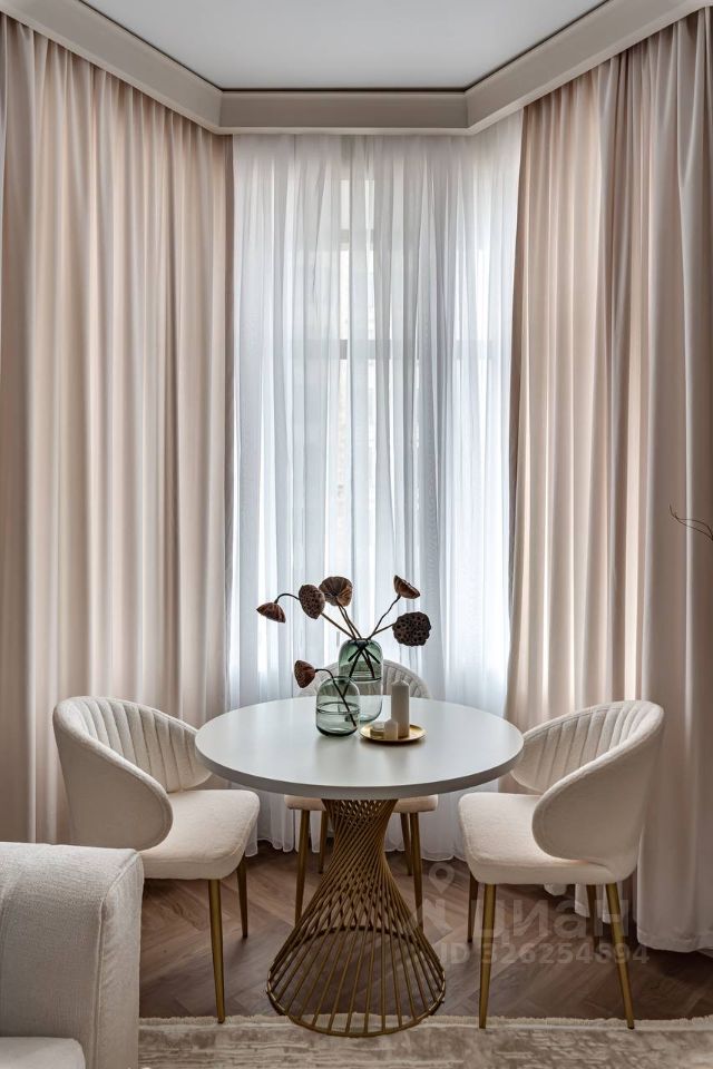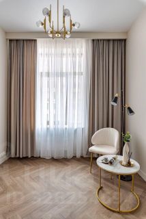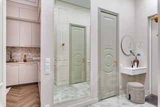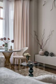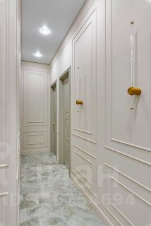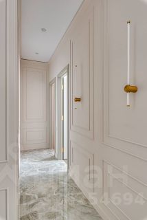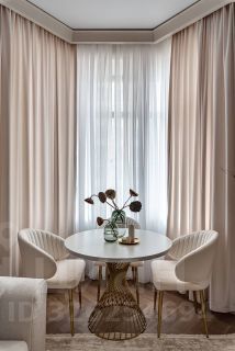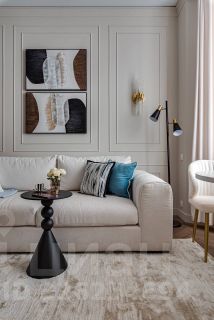 Просторная и залитая светом квартира расположена в новом жилом комплексе, выдержанном в архитектурном стиле сталинского неоклассицизма.