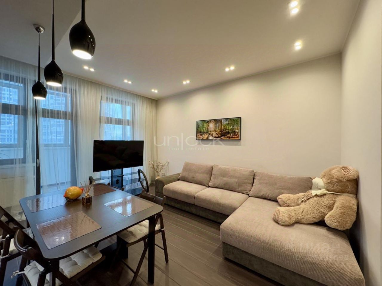Вся мебель и техника остается.
