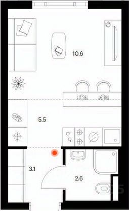Студия-21,2 м²