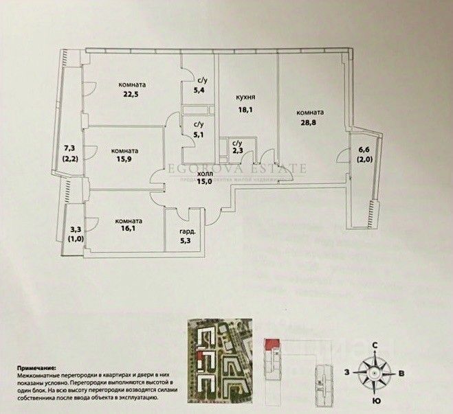 Общая площадь 139,7 кв.м.плюс три балкона (в том числе один большой на две комнаты, который можно разделить).