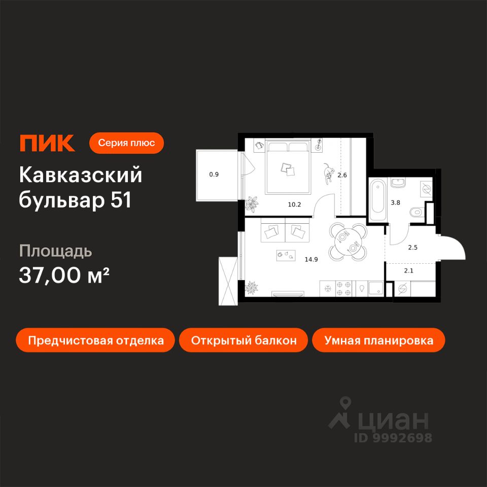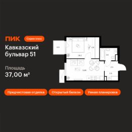 Продаётся 1-комн. квартира площадью 37 кв.м на 14 этаже 24 этажного дома (Корпус 3.5, Секция 2) проекта ПИК Кавказский бульвар 51. Светлый просторный подъезд на уровне земли, функциональная планировка, большие окна, предчистовая отделка.