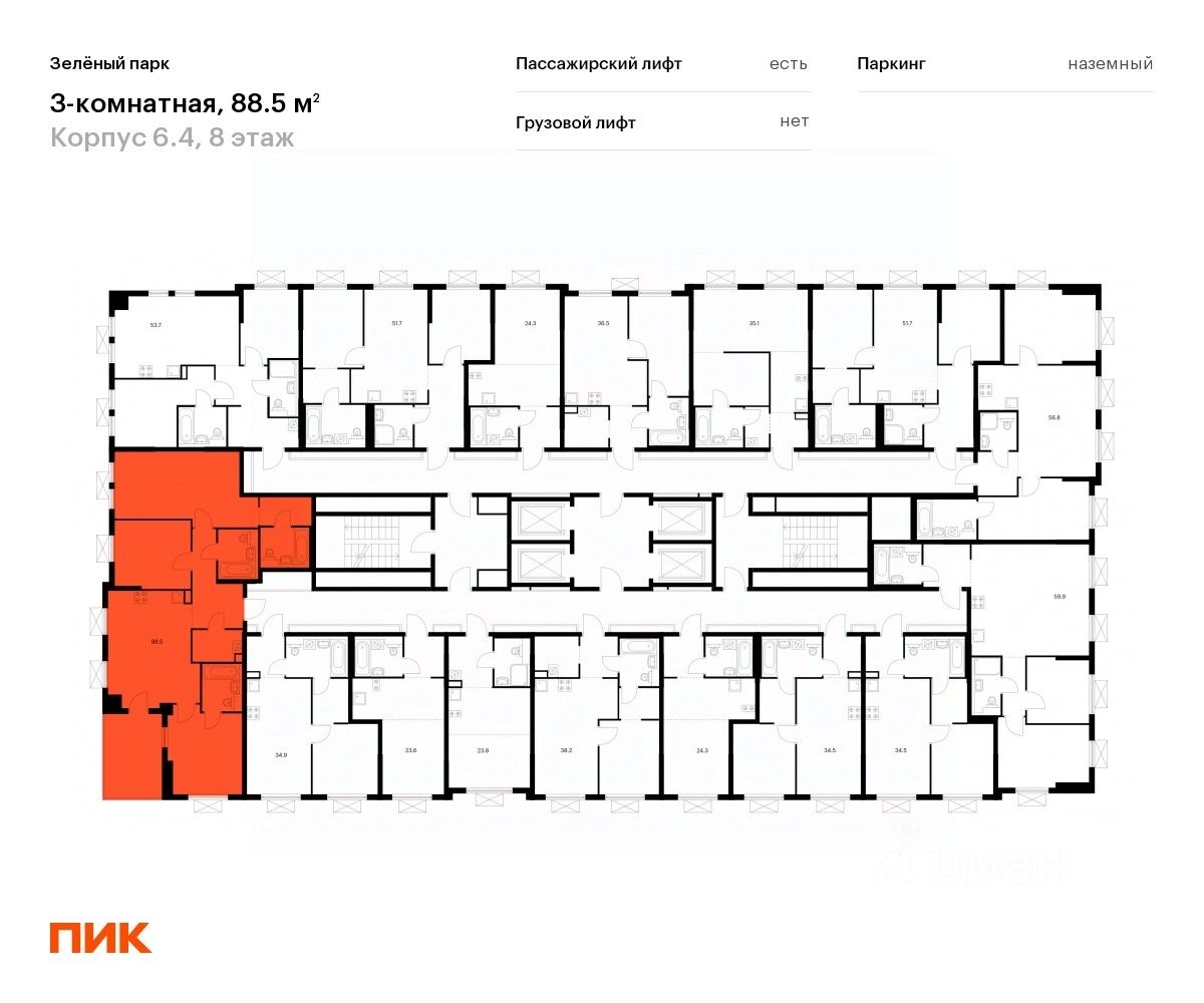 Продаётся 3-комн. квартира площадью 88,5 кв.м на 8 этаже 25 этажного дома (Корпус 6.4, Секция 4) проекта ПИК Зелёный парк. Светлый просторный подъезд на уровне земли, функциональная планировка, большие окна, c отделкой.