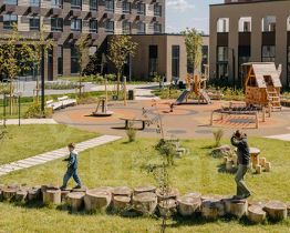 В проекте запланированы также два детских сада, две школы и паркинг. На первых этажах откроются магазины, кафе и другие сервисы — чтобы купить кофе и свежий хлеб к завтраку, можно будет просто спуститься на лифте. В уютных дворах-парках появятся места для отдыха, детские площадки, кофейни и зоны отдыха.