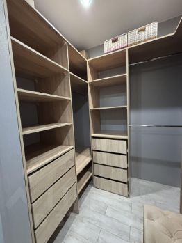 Квадратный просторный коридор дополнен большой гардеробной, в которую уместятся абсолютно все ваши вещи (комнаты освобождены от шкафов).