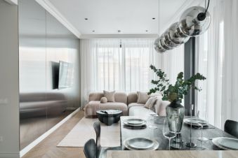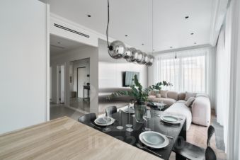 Квартира с дизайнерским ремонтом, вся мебель изготовлена на заказ, в отделке использованы натуральные материалы: мрамор, металл, микроцеммент, шпон, массив.